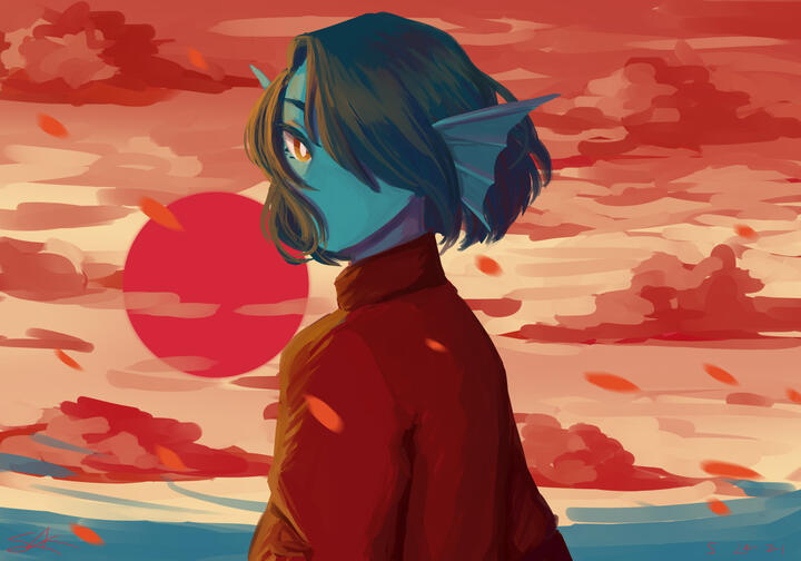 - Using my commission for promotional imagery is okay, but directly profiting from my artwork is not. (Things like merch, prints, etc.)